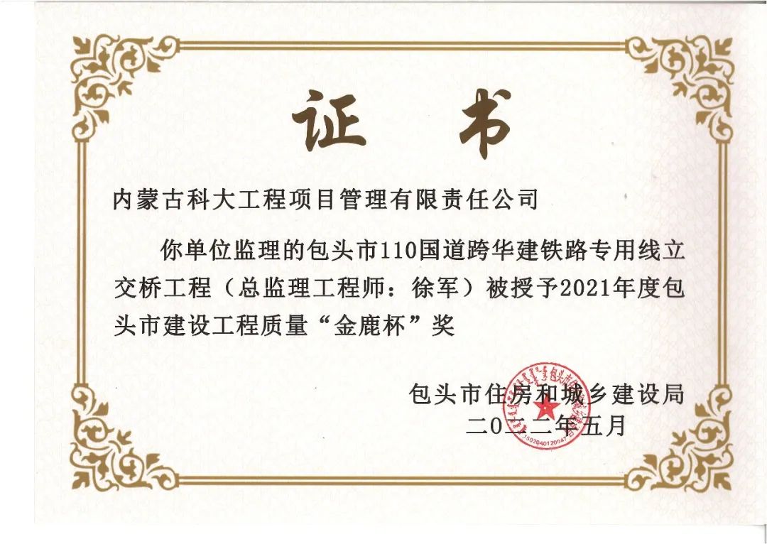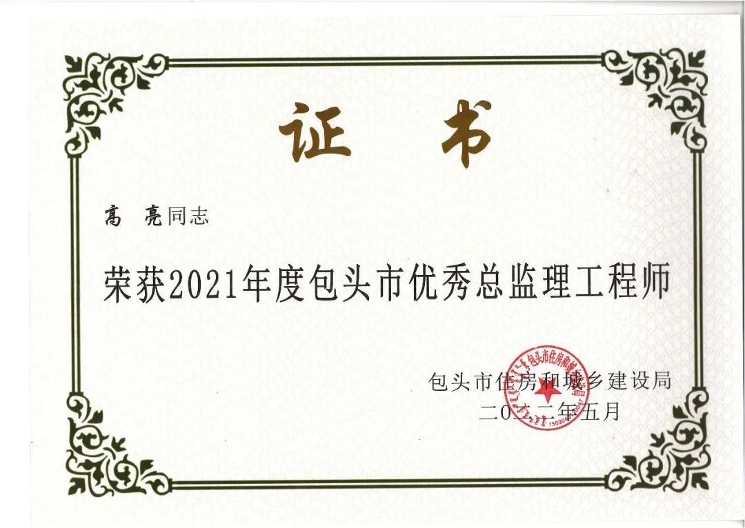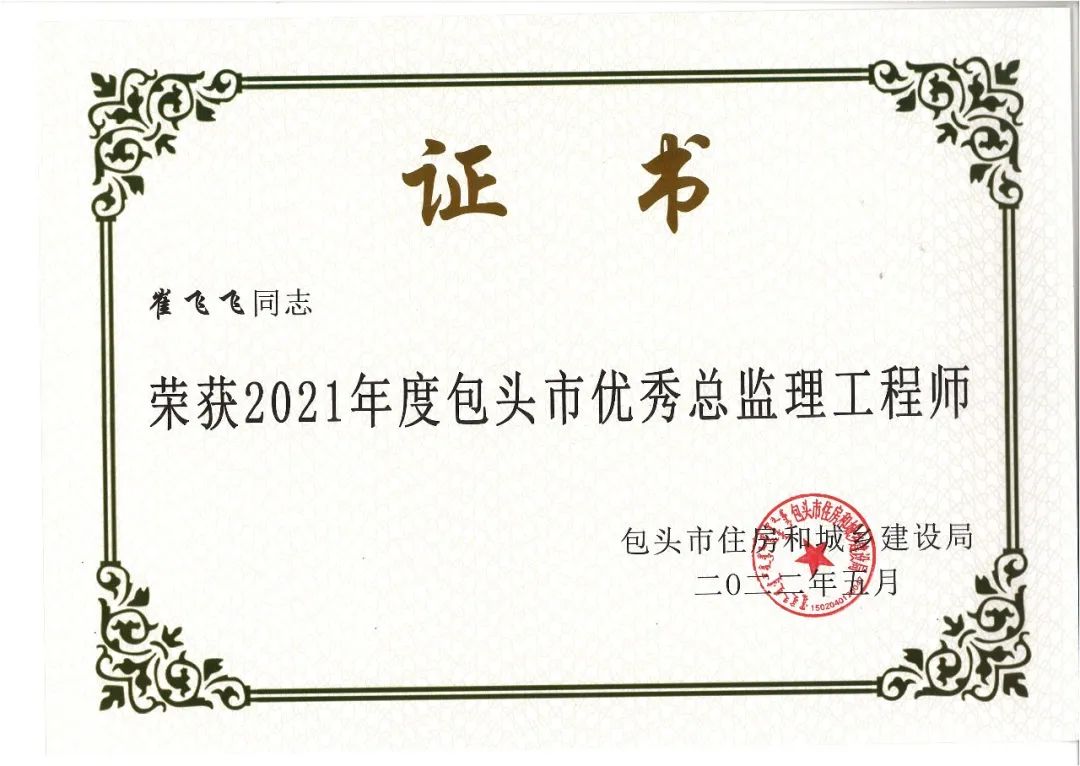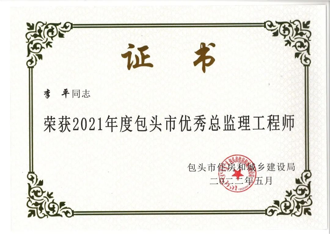 我公司及多个项目获得奖项,多名总监获得“2021年度包头市优秀总监理工程师”荣誉称号!