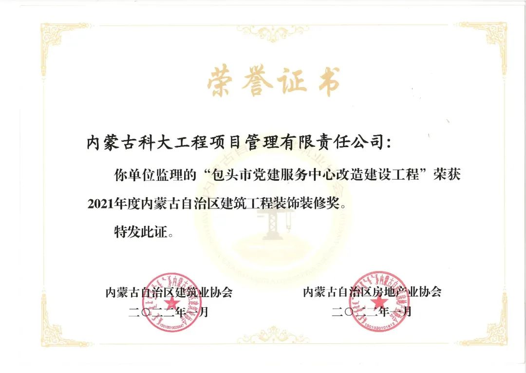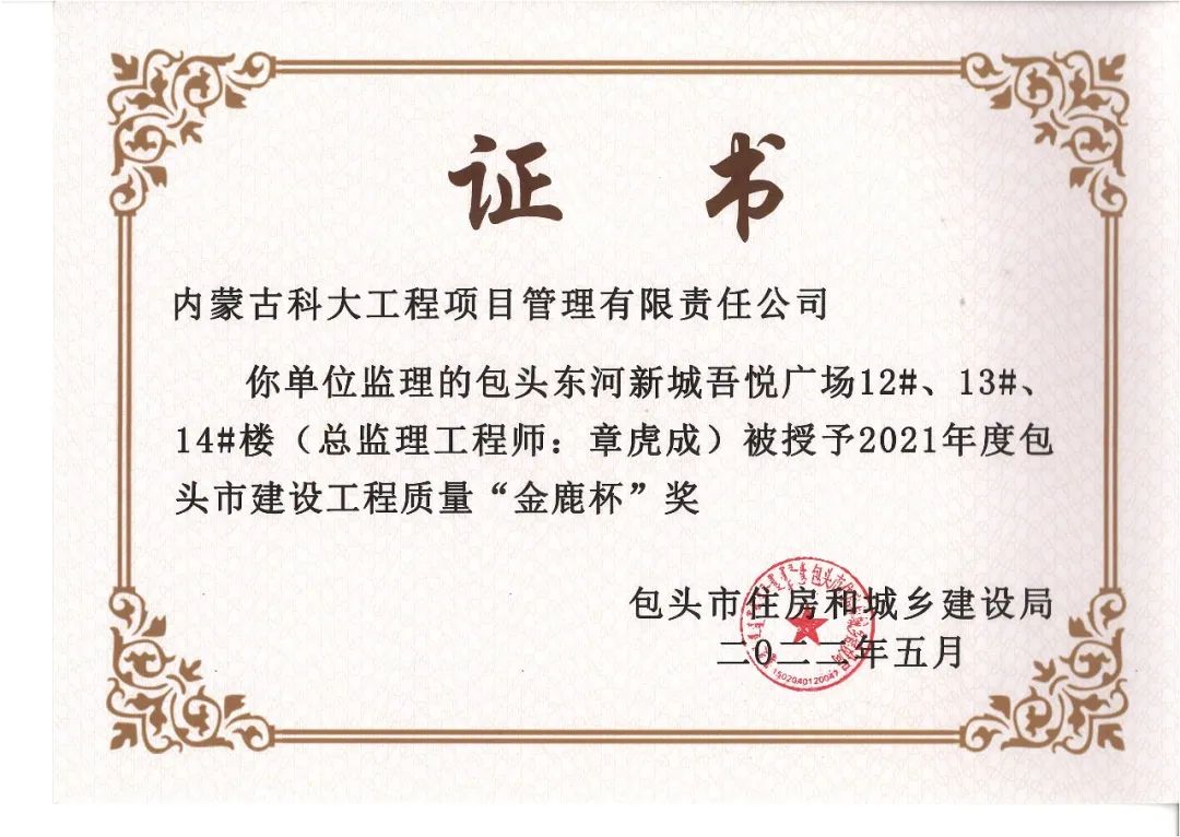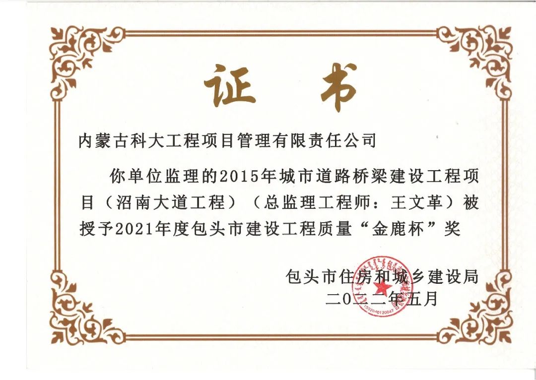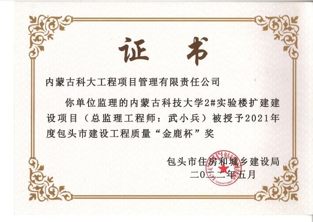 我公司及多个项目获得奖项,多名总监获得“2021年度包头市优秀总监理工程师”荣誉称号!