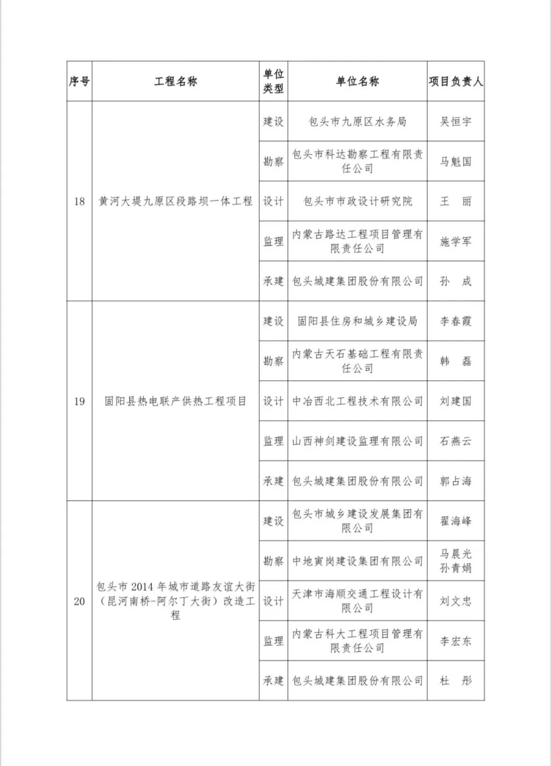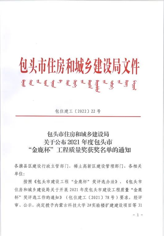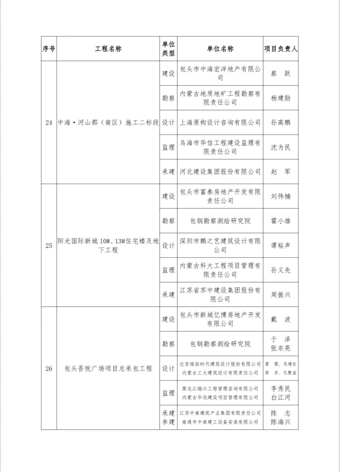 2021年度包头市建设工程质量“金鹿杯”奖(4个项目)
