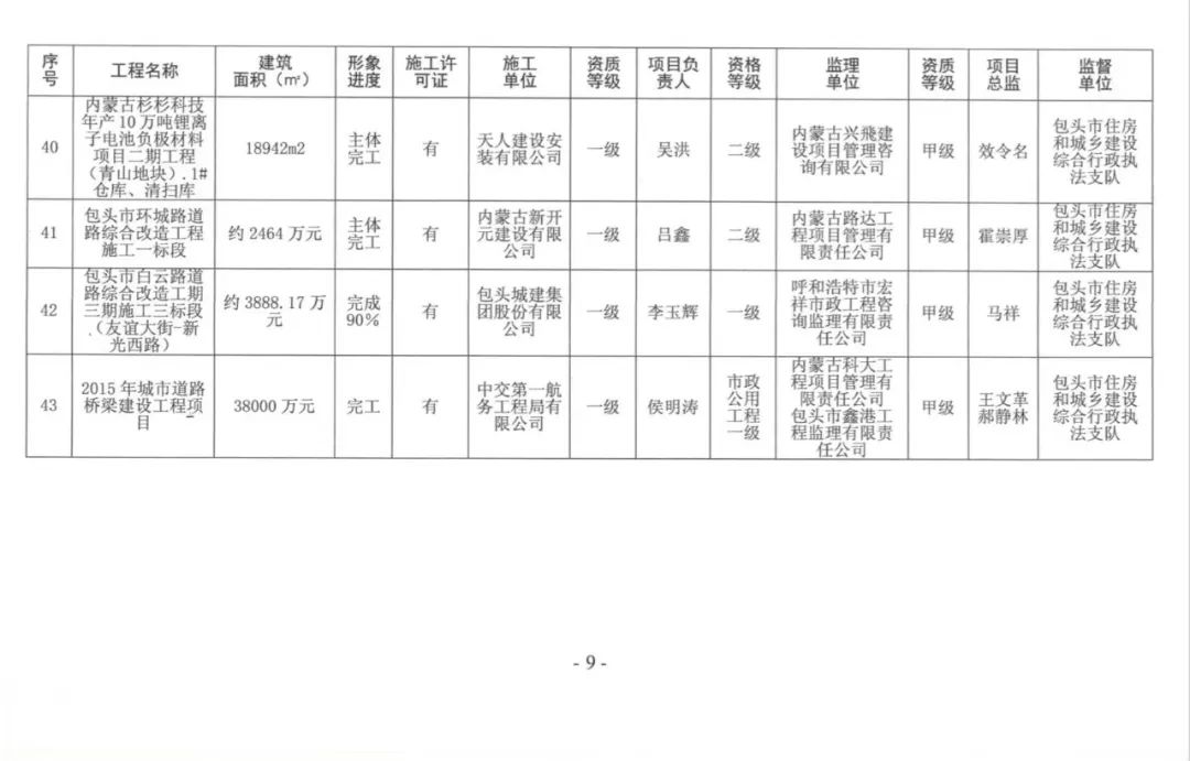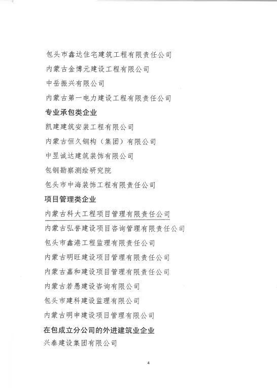 包头市建筑业企业信用评价AAA级企业